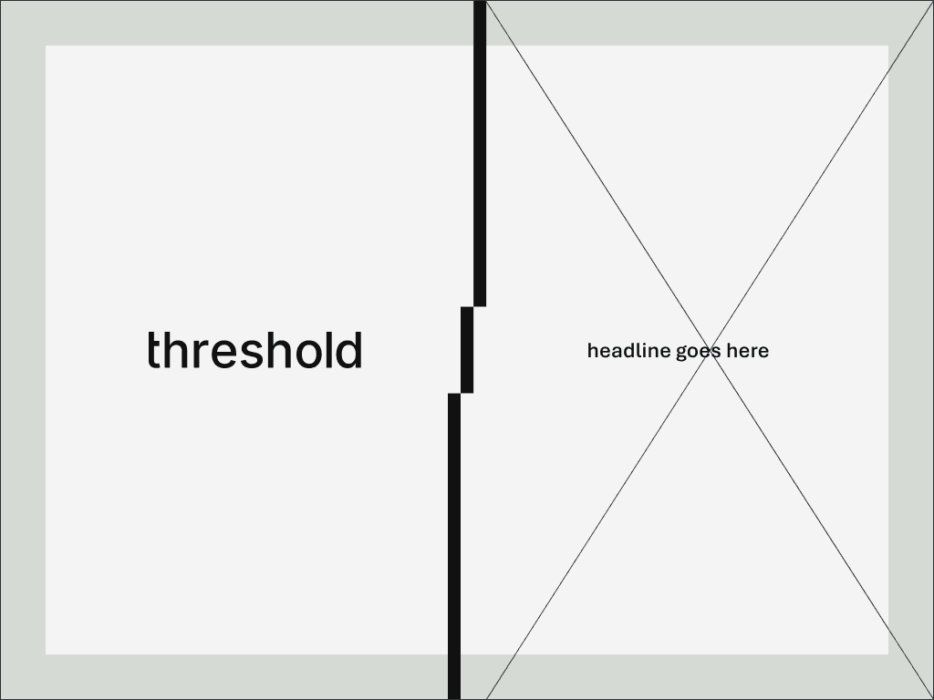 The threshold logo anchors the layout. It aligns to edges and structure, not decoration. Placement favors clarity, balance, and restraint, allowing the work to lead and the brand to hold its ground.